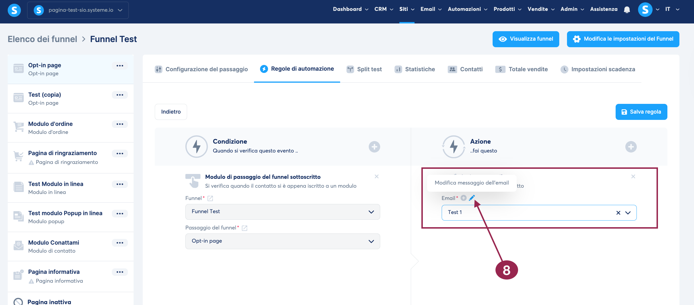 Vi consigliamo di effettuare una registrazione di prova sulla vostra opt-in page per verificare che tutto funzioni correttamente. Se si riscontrano problemi di mancato invio dell'email, di mancata registrazione dei contatti, ecc. è possibile contattare il supporto di systeme.io cliccando qui.