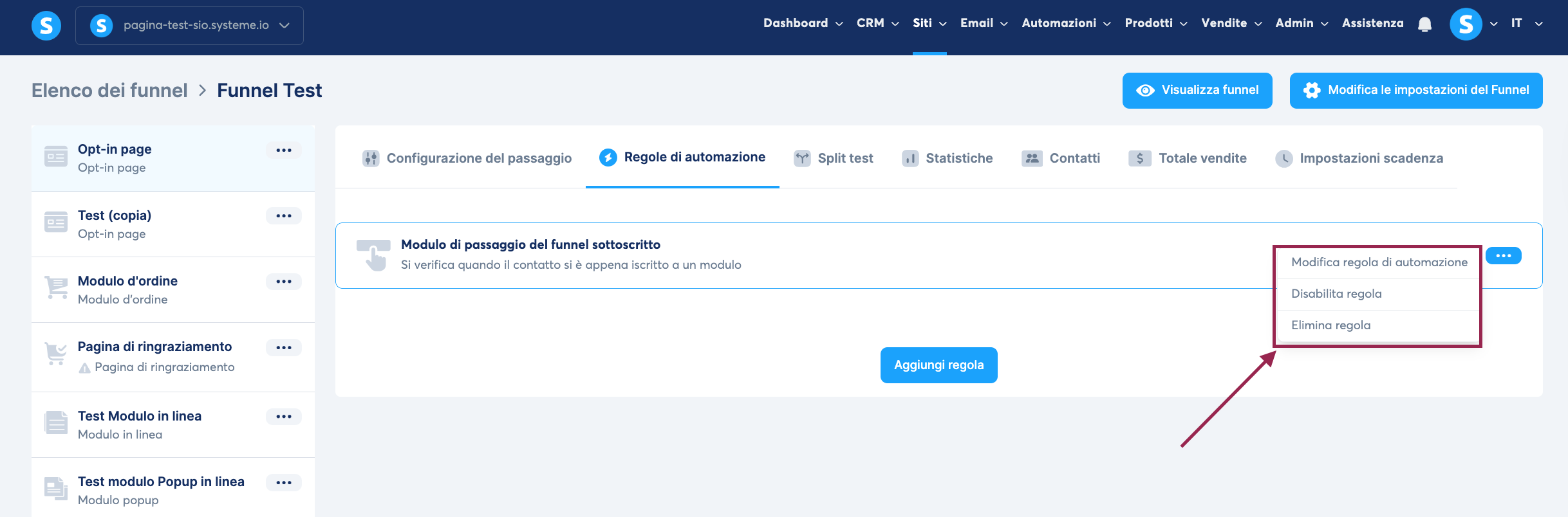 Inoltre, quando si fa clic sui 3 puntini per una determinata regola, si ha la possibilità di: