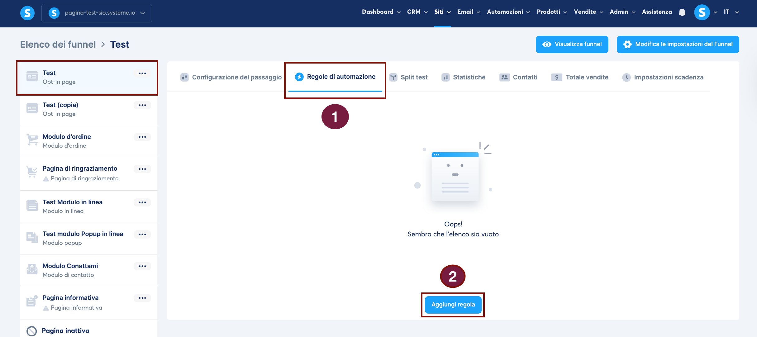 Ti consigliamo di effettuare una registrazione di prova sulla tua opt-in page per verificare che tutto funzioni correttamente. In caso di problemi legati all'invio dell'e-mail, alla mancata registrazione dei contatti e così via, è possibile contattare il supporto di systeme.io facendo clic qui.