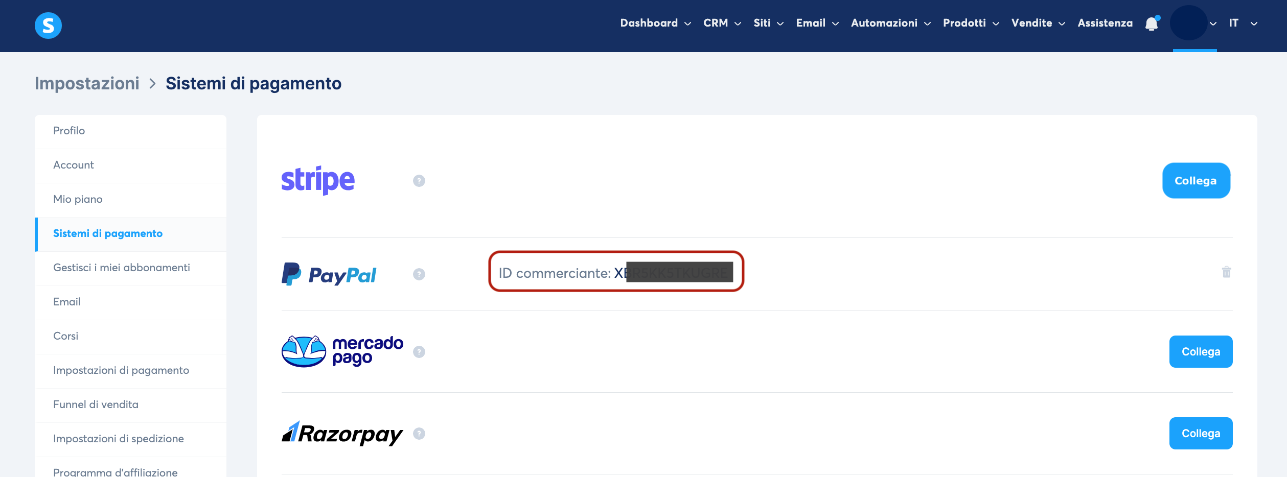 Il tuo account PayPal è ora completamente integrato con systeme.io ed è pronto per elaborare i pagamenti!