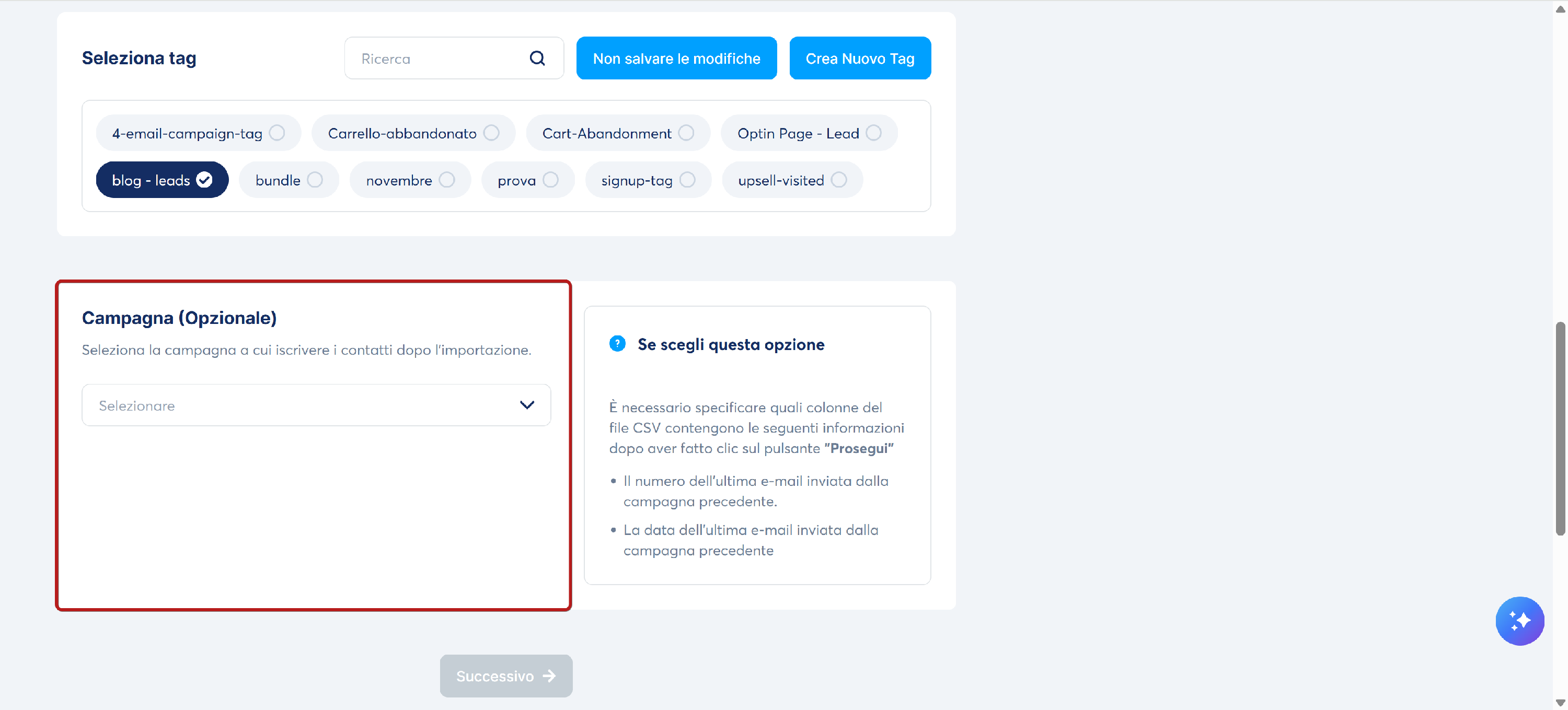 Per ulteriori informazioni su questo argomento, consulta questo articolo: Come iscrivere i contatti a una campagna durante l'importazione di una lista contatti